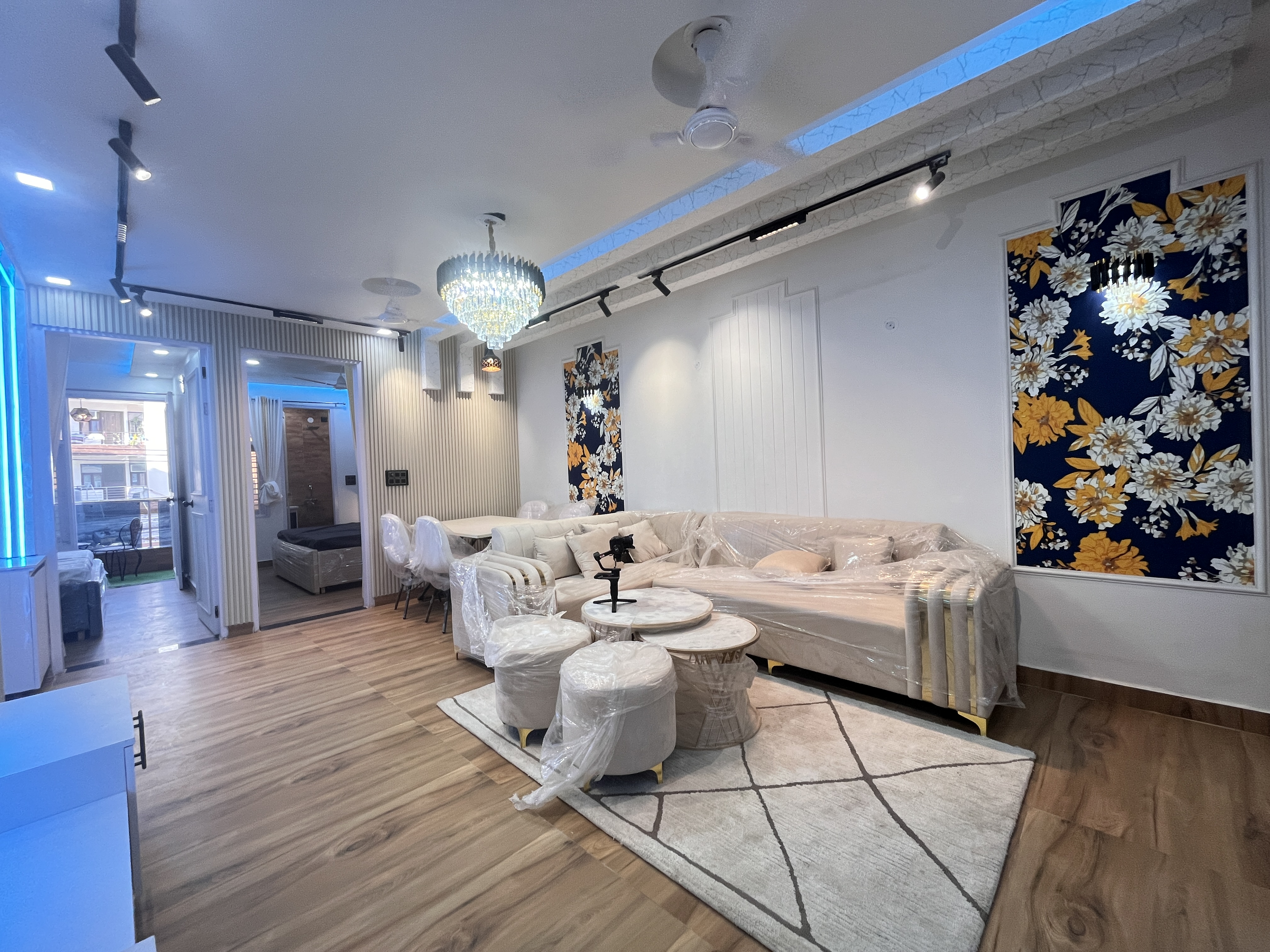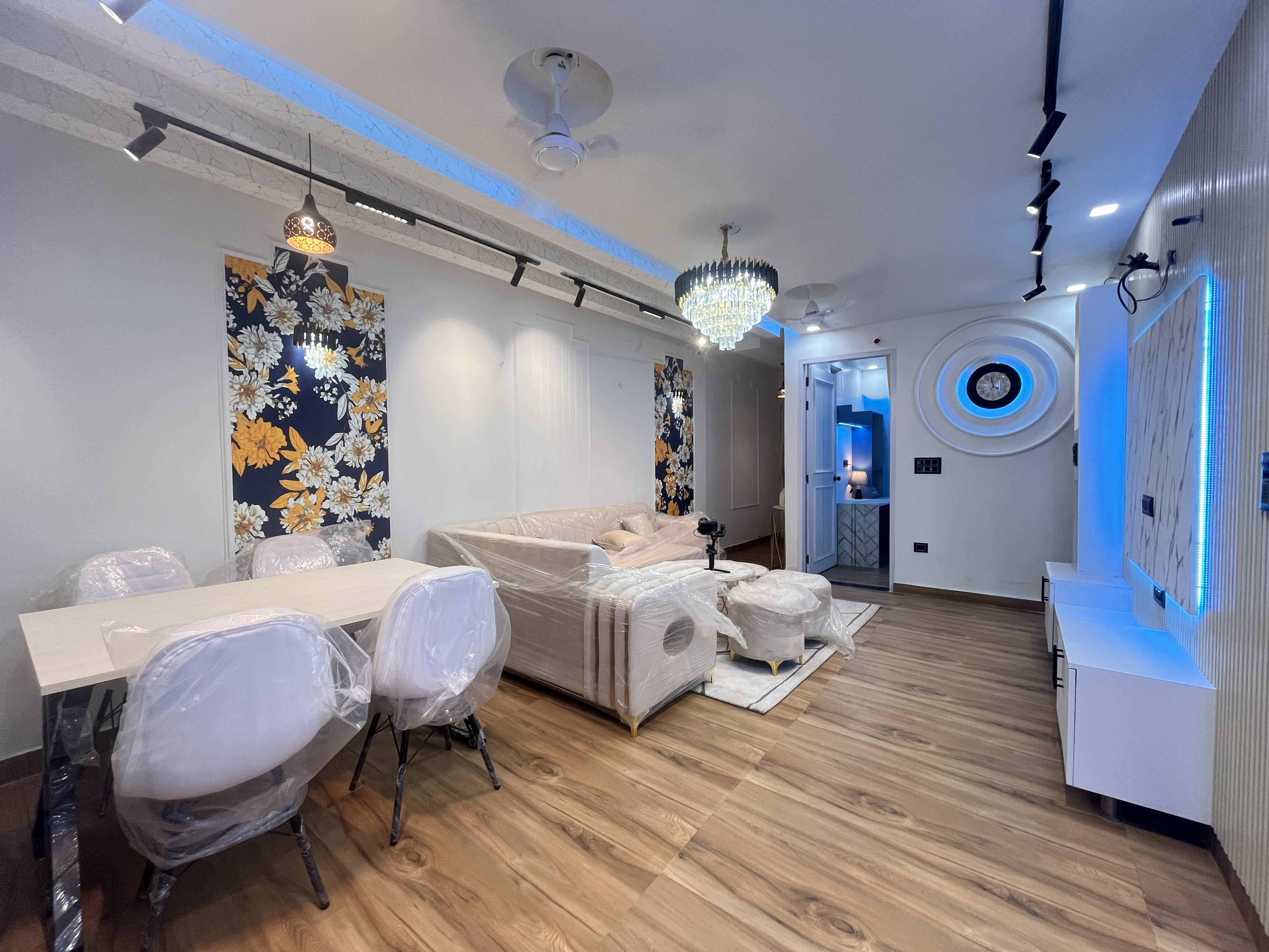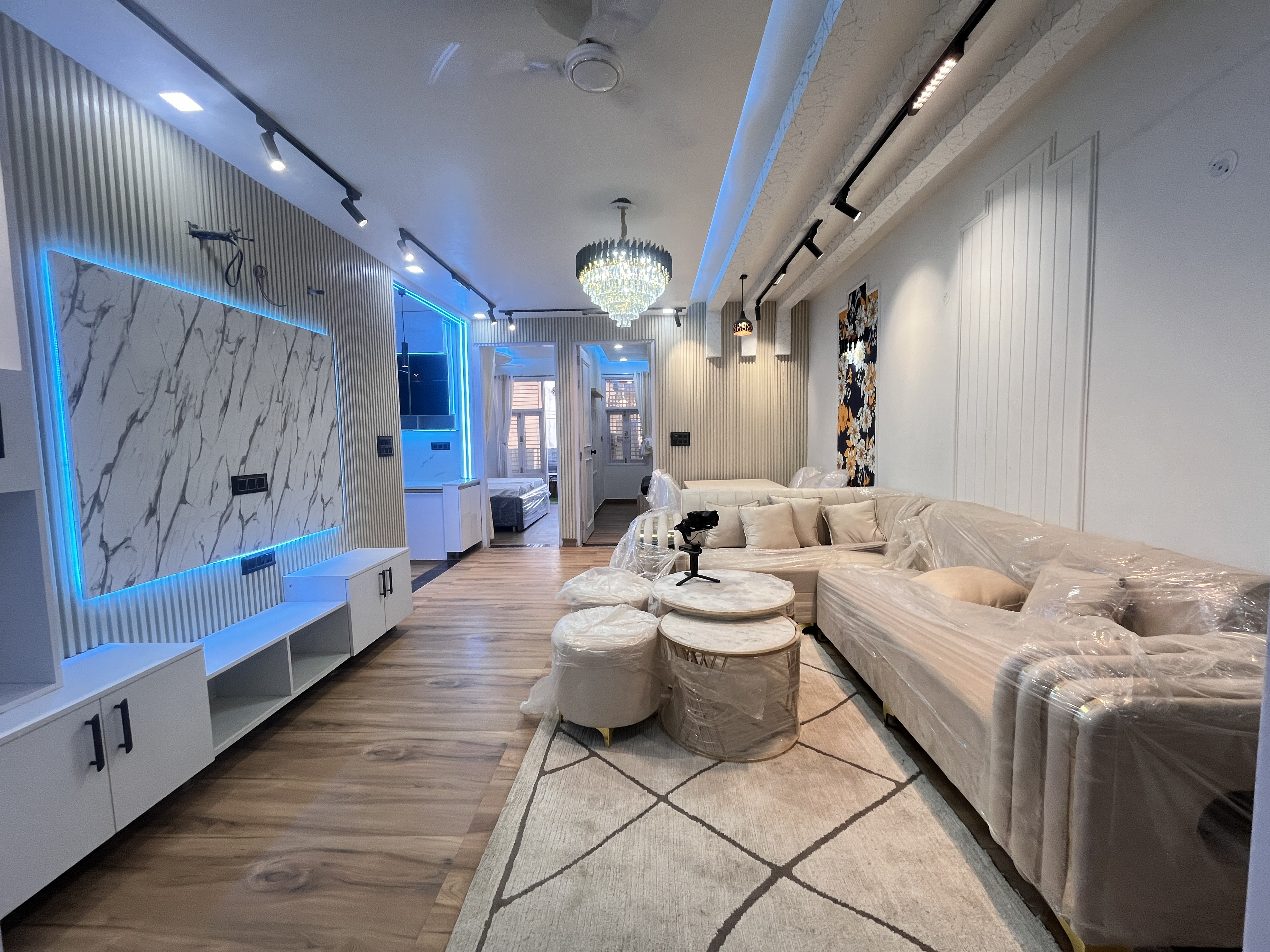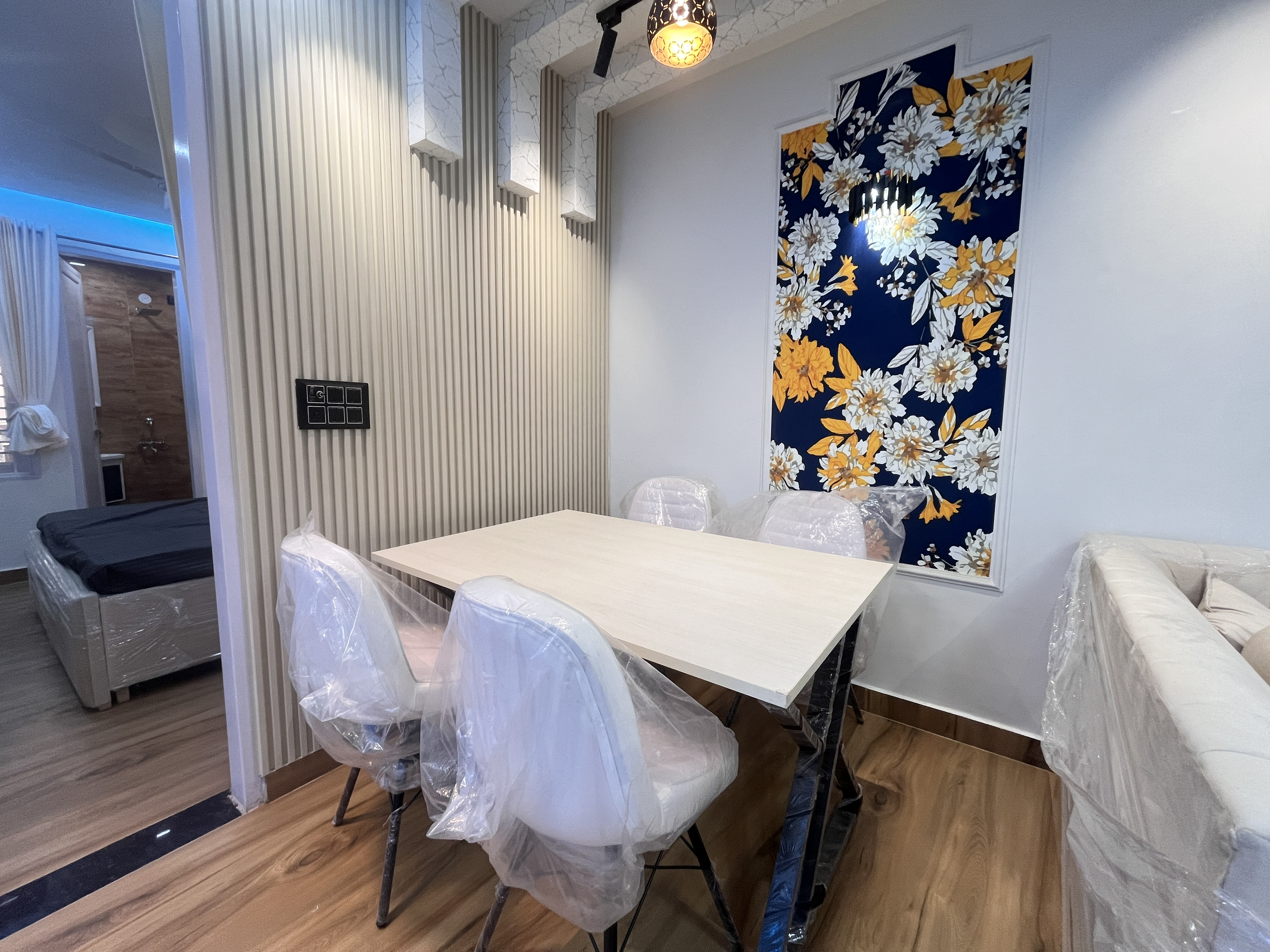 M-Sanvi Real Estate. This exquisite flat offers a harmonious blend of contemporary design, premium furnishings, and a host of modern amenities.